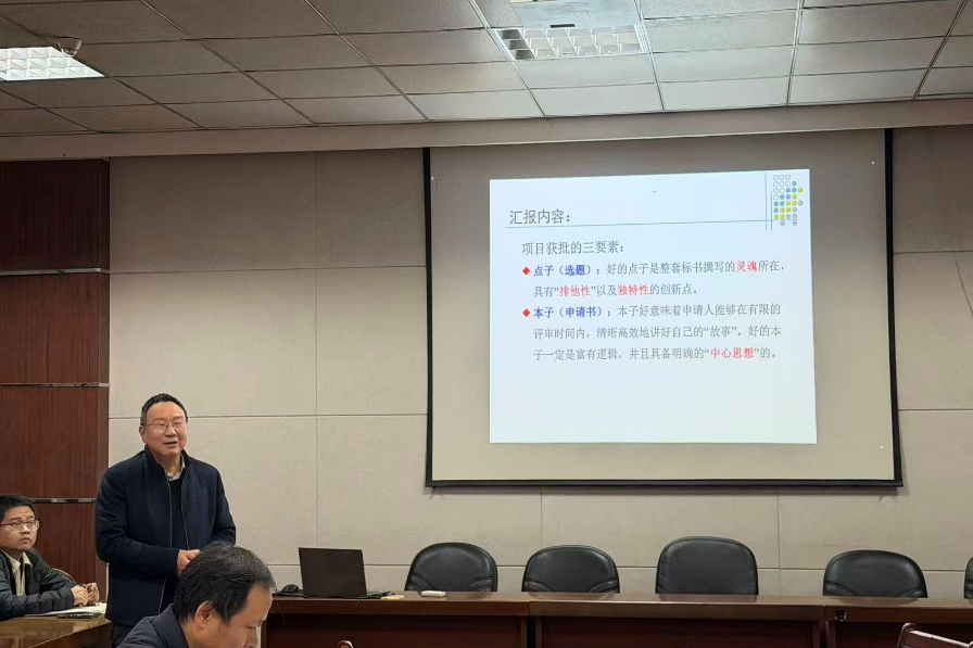 在辅导讲座环节,龚本刚教授以“国家基金申请的一点体会”为题作专题分享。龚教授围绕国家基金申报的核心要求与评审导向,从选题方向精准定位、研究框架系统搭建、创新点深度提炼等维度展开系统阐述,强调选题需紧扣国家战略需求与学科发展前沿,既要立足自身研究基础形成差异化优势,又要凸显问题导向与实践应用价值,为教师们理清了选题的核心逻辑。