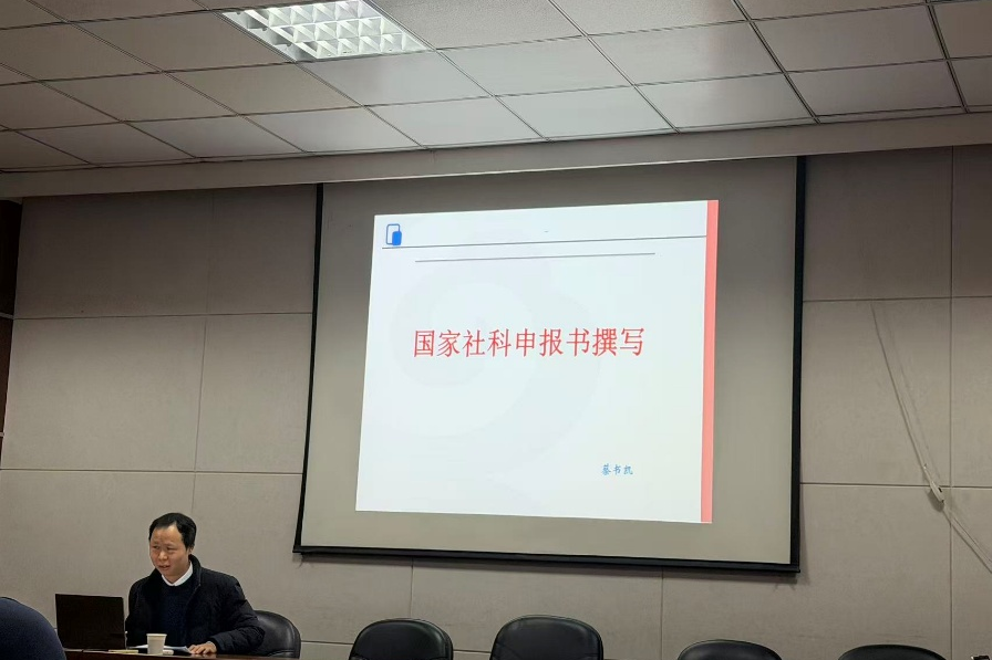 蔡书凯教授作题为“国社科申报书撰写”的专题讲座。蔡教授结合自身多年申报与评审实践经验,聚焦申报书的撰写规范、数据支撑体系、研究方法适配性等关键问题深入拆解,通过典型案例对比分析,详细讲解了申报中常见的逻辑漏洞、表述误区及规避策略,内容务实具体、操作性极强,为教师们提供了清晰的撰写指引。