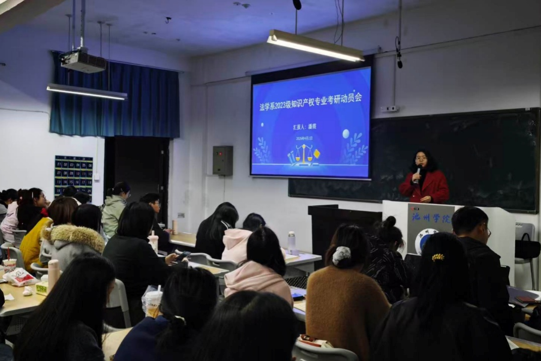 4月1日晚7点,2023 级知识产权 1 班、2 班考研动员大会在博采楼南楼104教室顺利举行。系主任潘霞、专任教师吴合庆、贾敏雪、马凌天,辅导员余芳芸、林夜出席会议,为学子们的考研备考之路精准赋能。
