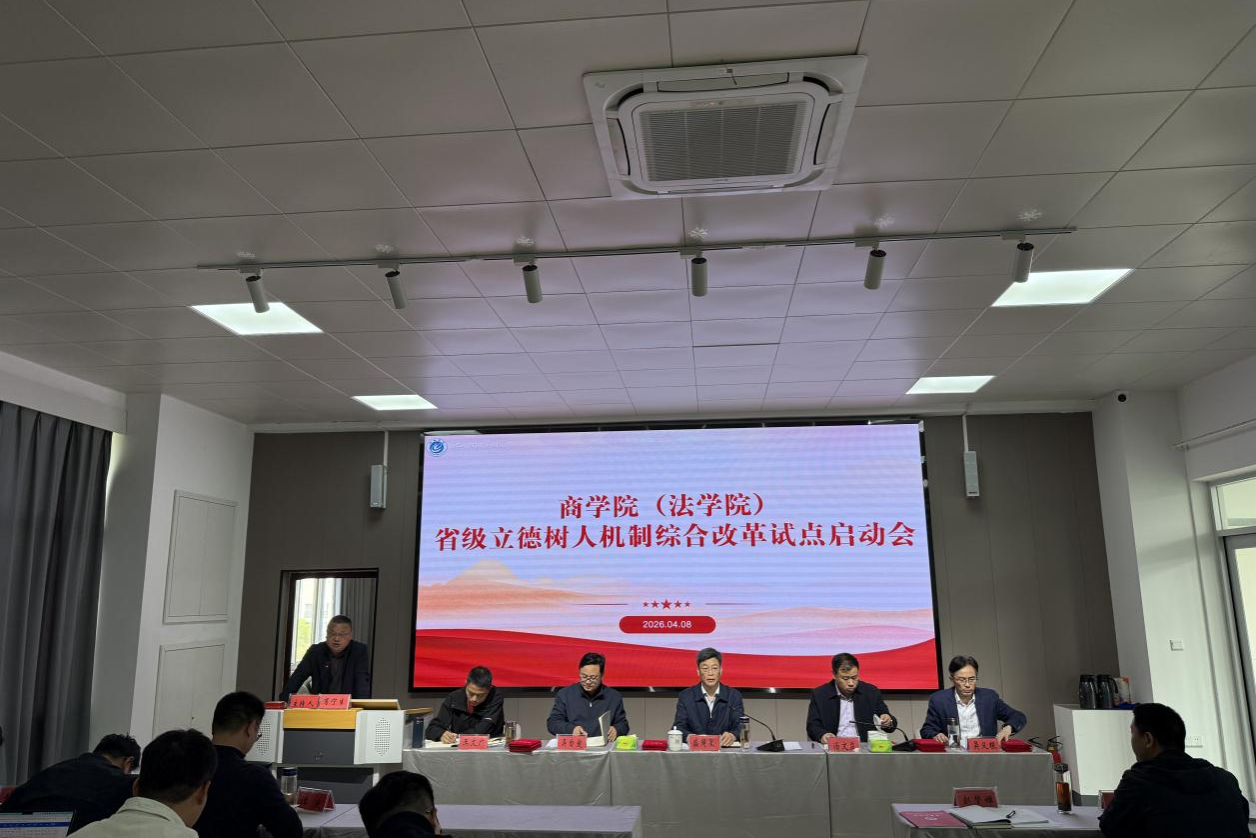2026年4月8日,商学院(法学院)省级立德树人机制综合改革试点院系启动会在博识楼召开,校党委副书记盛国星,党委委员、宣传部部长汤文益出席,学院党委书记肖宁生主持会议,学院全体教职工参会。