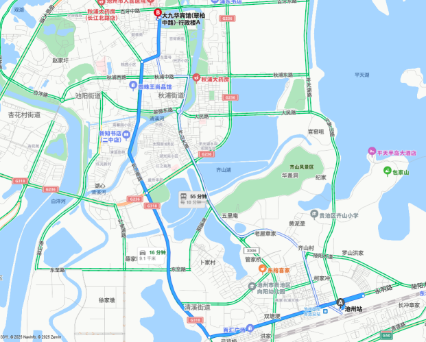 1.乘坐出租车,全程9.1公里,行程约16分钟;