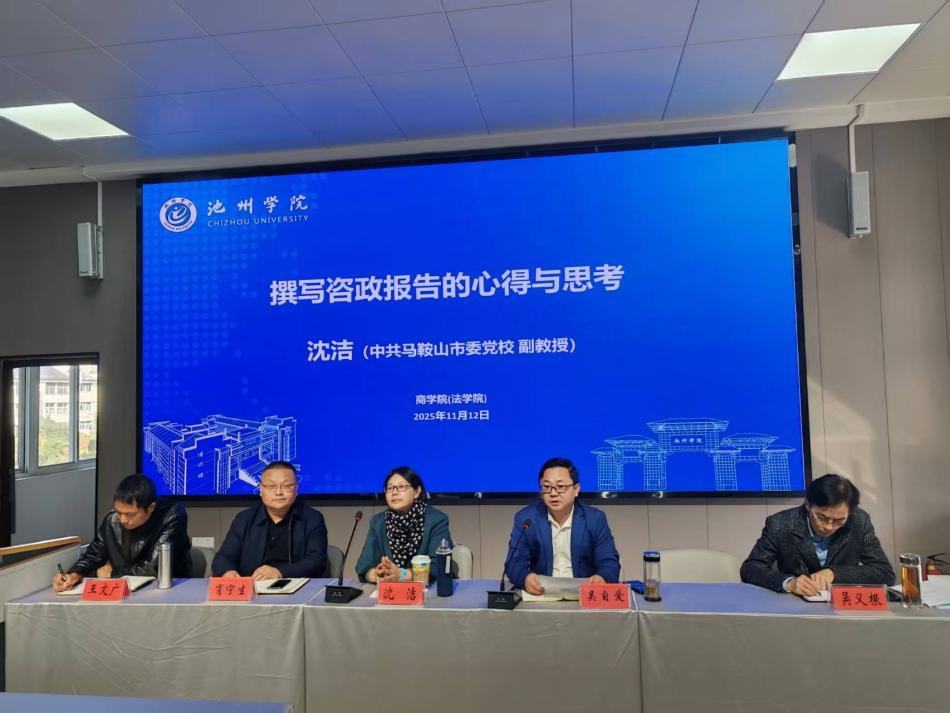 11月12日下午,咨政报告专题辅导会议在博识楼北401实验室顺利召开。中共马鞍山市委党校沈洁副教授担任主讲嘉宾,商学院(法学…