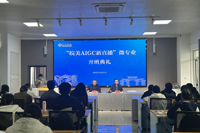10月31日下午,池州学院商学院(法学院)皖美AIGC新直播微专业开班仪式在博识楼北401会议室顺利举行。商学院(法学院)党委书记肖宁生、商学院(法学院)院长吴自爱、电子商务系主任桂冬冬、电子商务系教师以及电子商务专业大三大四全体学生共同出席。开班典礼由电子商务系主任桂冬冬主持。