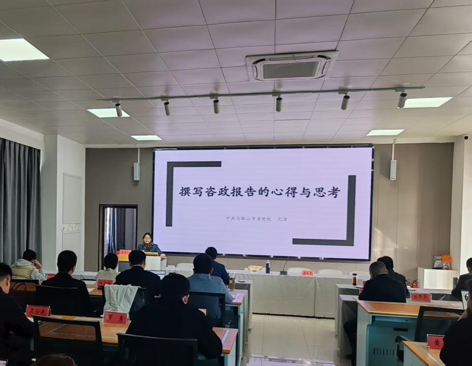 11月12日下午,咨政报告专题辅导会议在博识楼北401实验室顺利召开。中共马鞍山市委党校沈洁副教授担任主讲嘉宾,商学院(法学院)院长吴自爱主持会议,教师代表参加聆听。