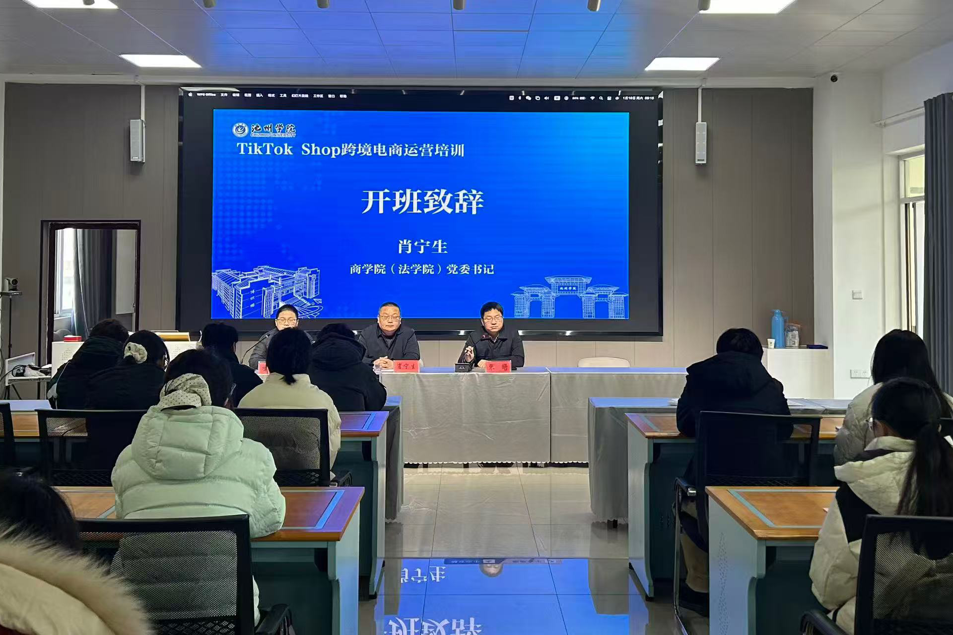 2026年1月10日至11日,池州学院商学院(法学院)在博识楼南404举办“TikTok Shop 跨境电商运营培训”。本次培训紧密对接跨境电商行业发展需求,依托校企合作资源,围绕平台运营、短视频内容生产与实操考核等关键环节开展系统化培训,着力提升学生的实战能力与岗位适配能力。