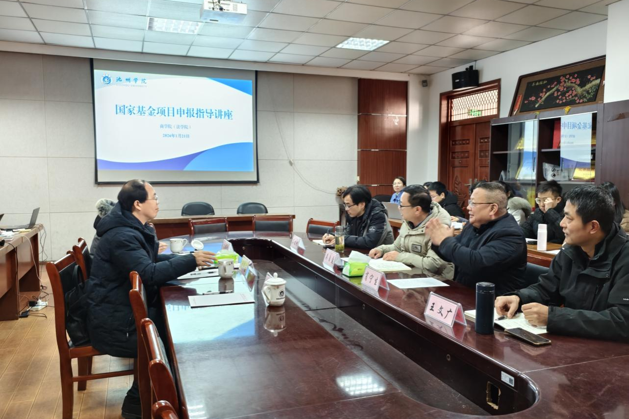 2026年1月21日,商学院(法学院)在博识楼二楼会议室举办国家基金项目申报论证会暨国家基金项目申报指导讲座。会议特邀东南大学首席教授刘修岩、南京审计大学孙伟增教授、安徽工业大学陈梦凯教授做学术讲座并担任论证专家。学院领导班子成员、博士教师参加会议,会议由学院院长吴自爱主持。