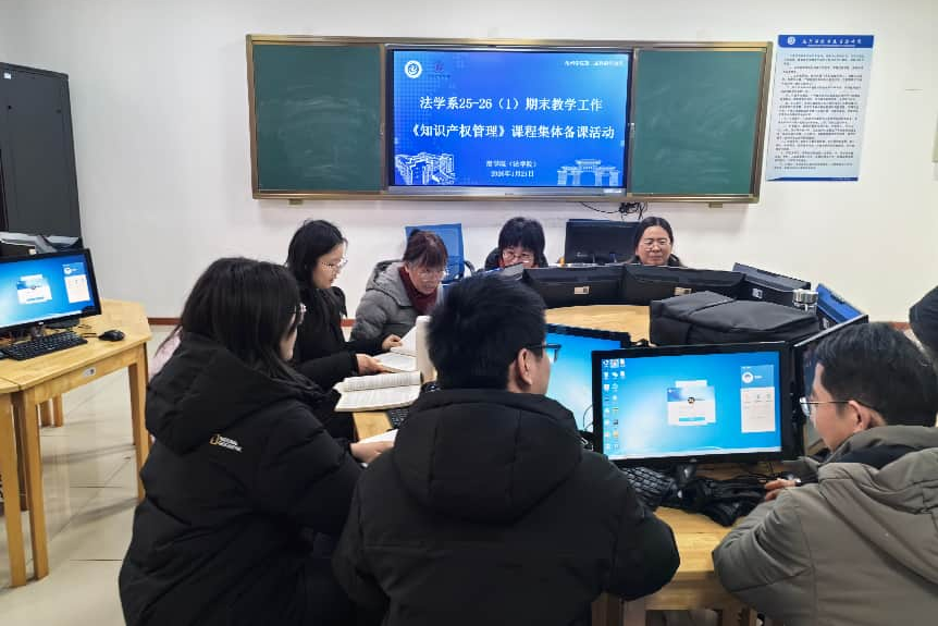 之后,开展《知识产权管理》课程的集体备课,王明老师就课程大纲、教学内容、教学方法、教学资源、实践环节及考核方式进行汇报,老师们就以上问题展开深入研讨,并形成统一教学方案与任务分工。随后开展流水阅卷专项工作,通过统一标准、分组阅卷、交叉复核等方式,确保评卷工作的公平、规范与高效。